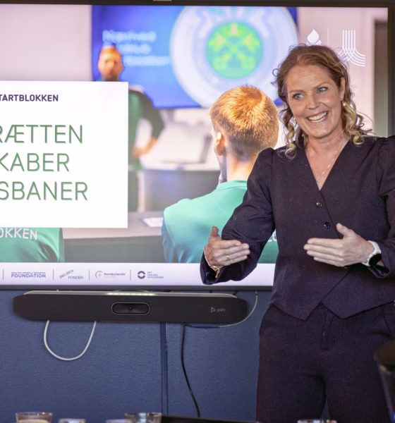 Rikke Hjulmand, Steffen Toft Spiele och Niclas Stenderup Høgh Kristensen från DIF håller föredrag om Startblokken, ett projekt för att få fler unga i arbete, studier eller lärlingsplats, med hjälp av idrott.