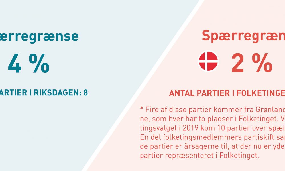 At der er en lavere spærregrænse for at få mandater til Folketinget end der er til Riksdagen betyder et større flow af partier i Folketinget end...