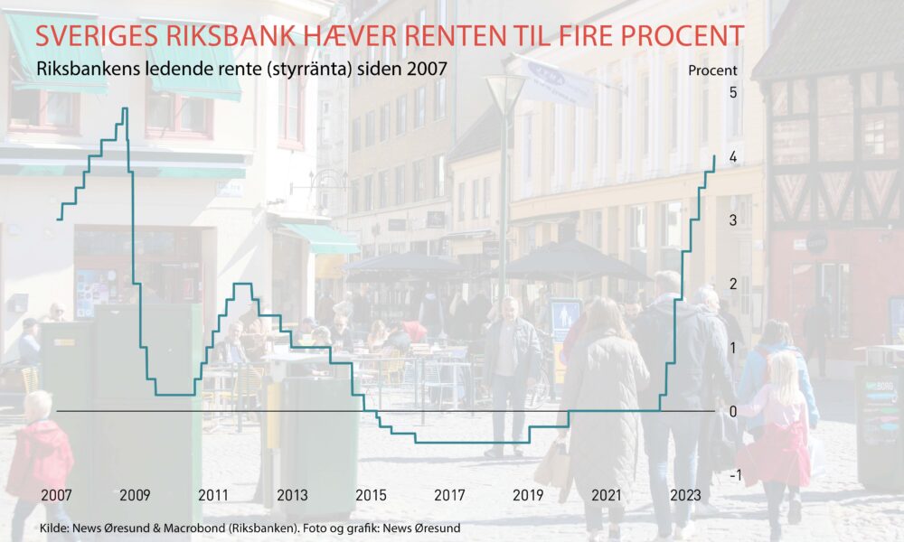 Torsdag hævede Sveriges centralbank, Riksbanken, sin ledende rente fra 3,75 til 4 pct. Det er den ottende stigning i træk, siden renten forlod nulpunktet i april...