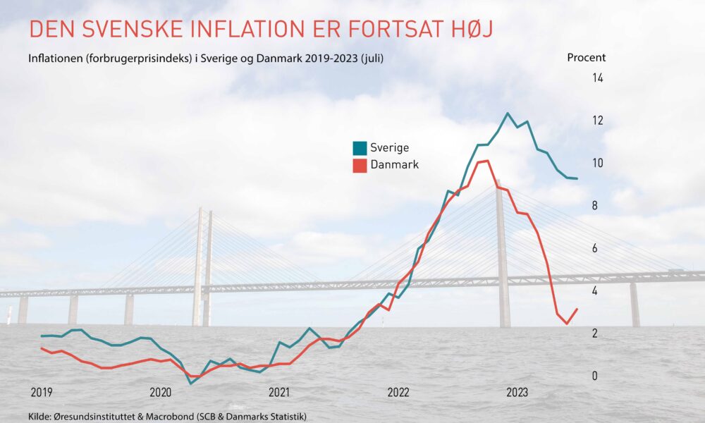Den svenske økonomi skrumper, mens dansk økonomi vokser moderat. Den svenske inflation er fortsat høj og landede på 9,3 pct. i juli, mens den danske inflation...