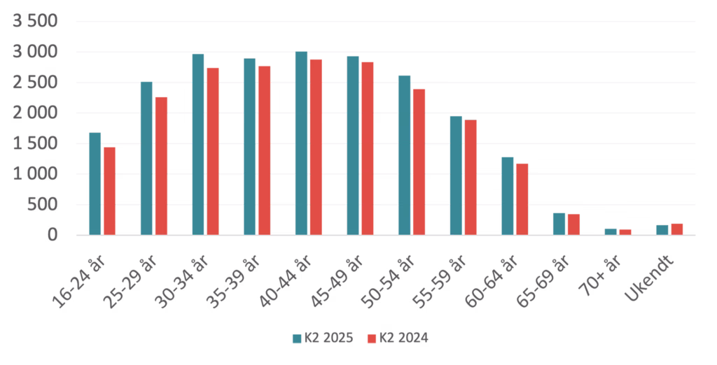 Antallet af pendlere over Øresund i alle aldersgrupper steg i andet kvartal af 2025, men især antallet af yngre pendlere er øget ifølge den seneste kvartalsstatistik. Grafik: News Øresund